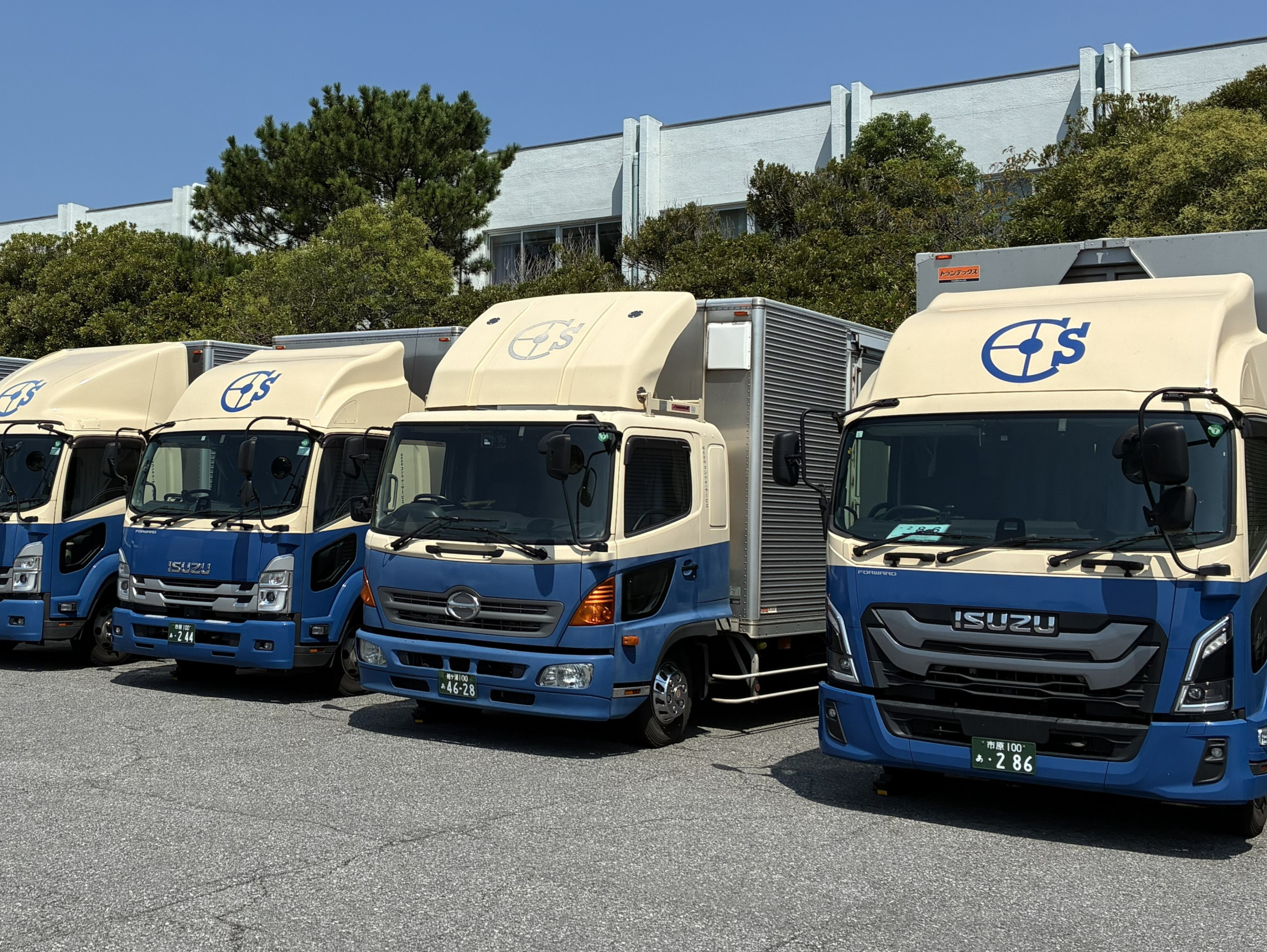 | 車輛台数 | 4tトラック(中型) ・バン(箱)車 9台 ・ウィング車 6台 ・フォークリフト 1台 ・社用車 1台 |